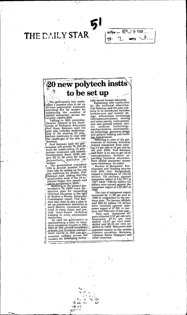 20-new polytech instts to be set up Published on Newspaper The Daily Star Category Personal Opinion / Discussion / Commentary Download