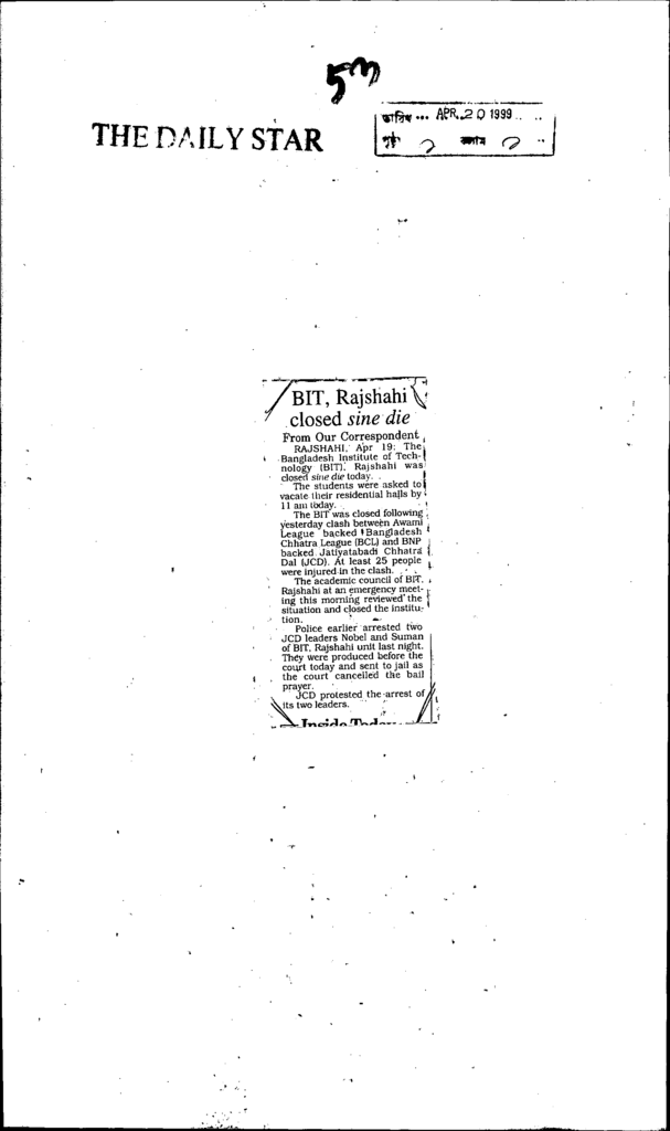 Bit, rajshahi closed sine die Published on Newspaper The Daily Star Category Technical and Vocational Education Download