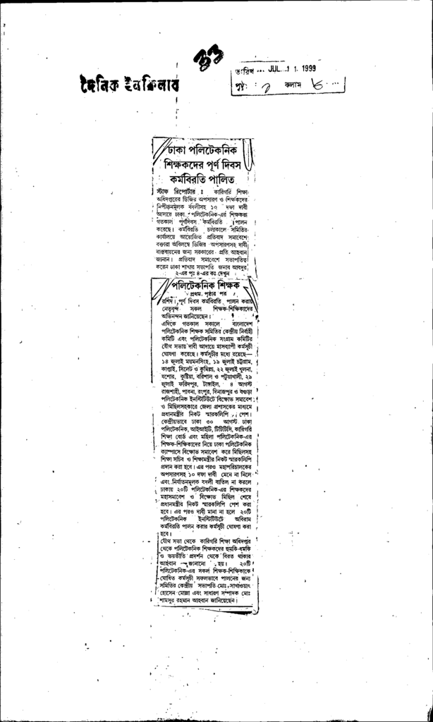 ঢাকা পলিটেকনিক শিক্ষকদের পূর্ণ দিবস কর্মবিরতি পালিত Published on Newspaper দৈনিক সংবাদ Category Technical and Vocational Education Download