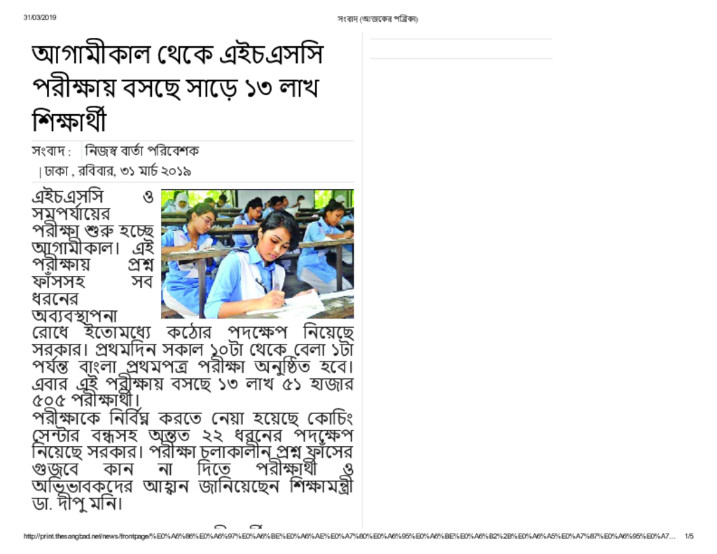 আগামীকাল থেকে এইচএসসি পরীক্ষায় বসছে সাড়ে ১৩ লাখ শিক্ষার্থী Published on Newspaper দৈনিক সংবাদ Category Public Examination Public Examination HSC Download