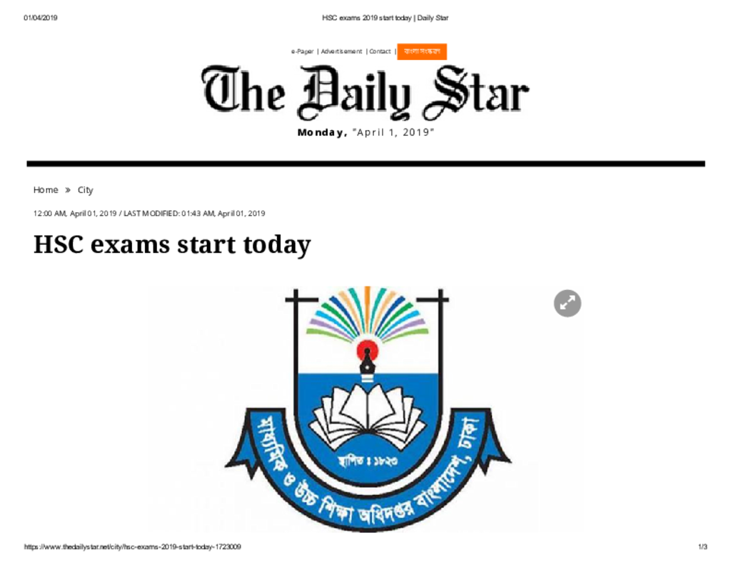 HSC exams 2019 start today _ Daily Star Published on Newspaper The Daily Star Category Public Examination Public Examination HSC Download