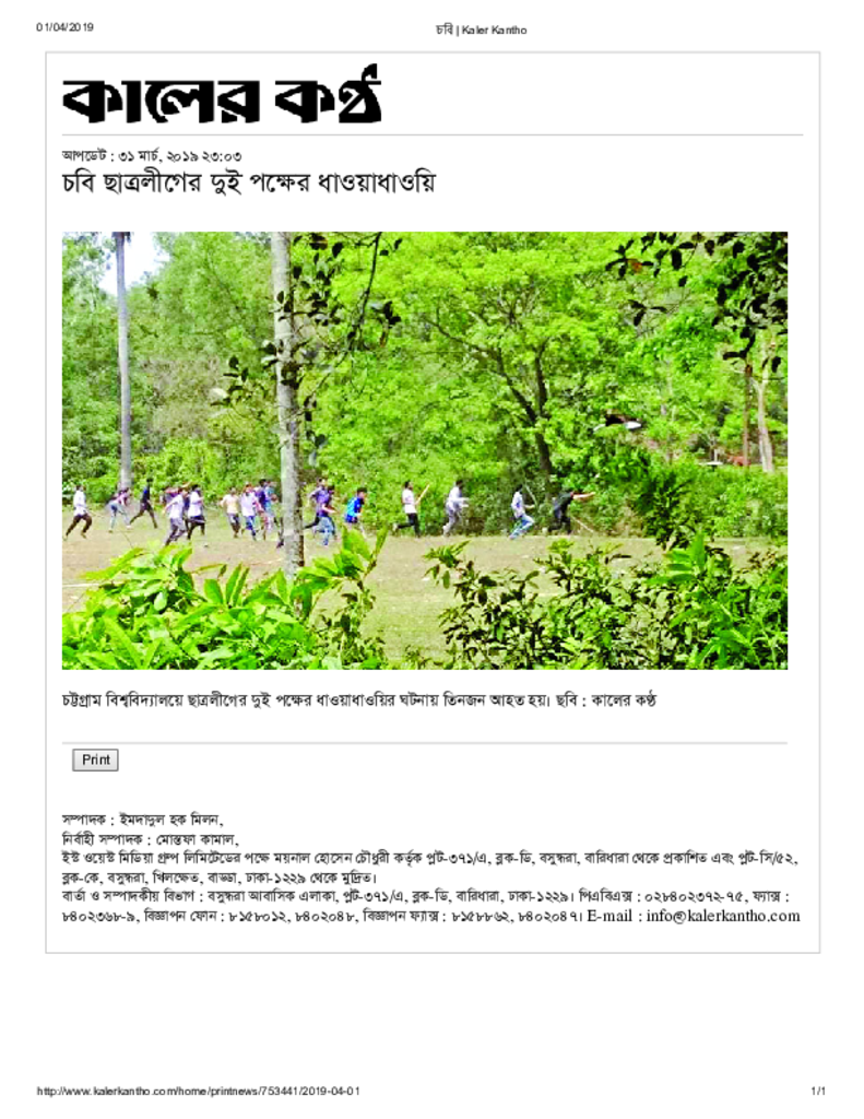 চবি ছাত্রলীগের দুই পক্ষের ধাওয়াধাওয়ি Published on Newspaper দৈনিক কালের কন্ঠ Category Campus Terrorism Download