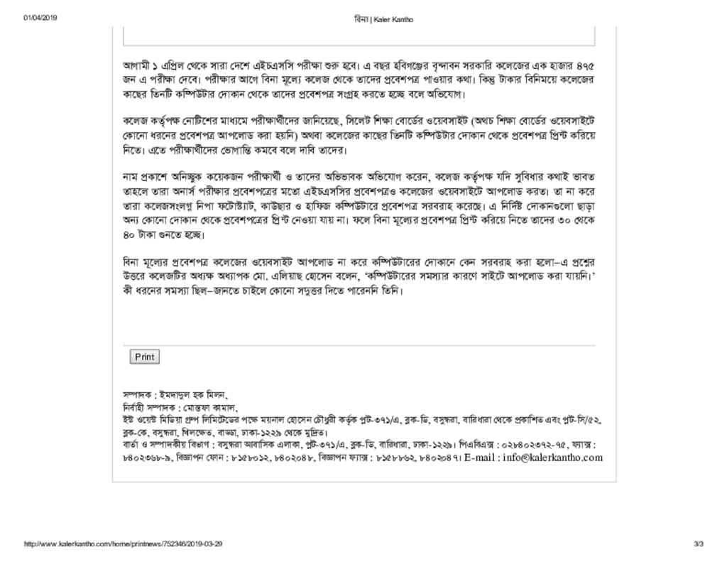 বিনা মূল্যের প্রবেশপত্র দিতে টাকা আদায় Published on Newspaper দৈনিক কালের কন্ঠ Category Public Examination Public Examination HSC Download