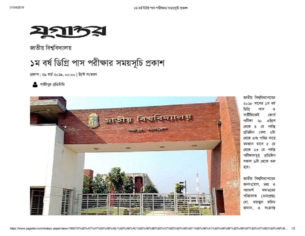 ১ম বর্ষ ডিগ্রি পাস পরীক্ষার সময়সূচি প্রকাশ Published on Newspaper দৈনিক যুগান্তর Category Public Examination Public Examination Higher Education Download