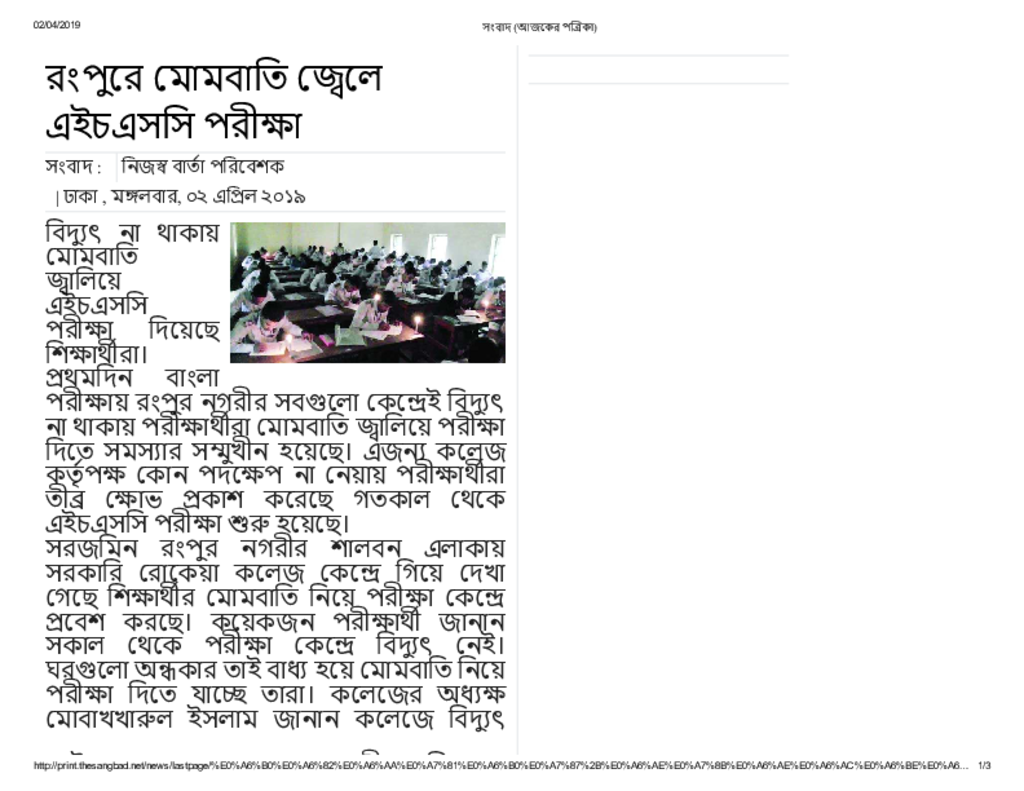 রংপুরে মোমবাতি জ্বেলে এইচএসসি পরীক্ষা