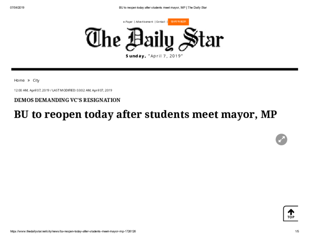 BU to reopen today after students meet mayor, MP _ The Daily Star Published on Newspaper The Daily Star Category General Education General Education Higher Education Private Download
