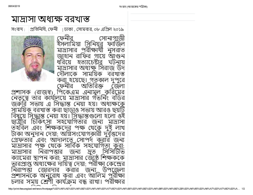 মাদ্রাসা অধ্যক্ষ বরখাস্ত