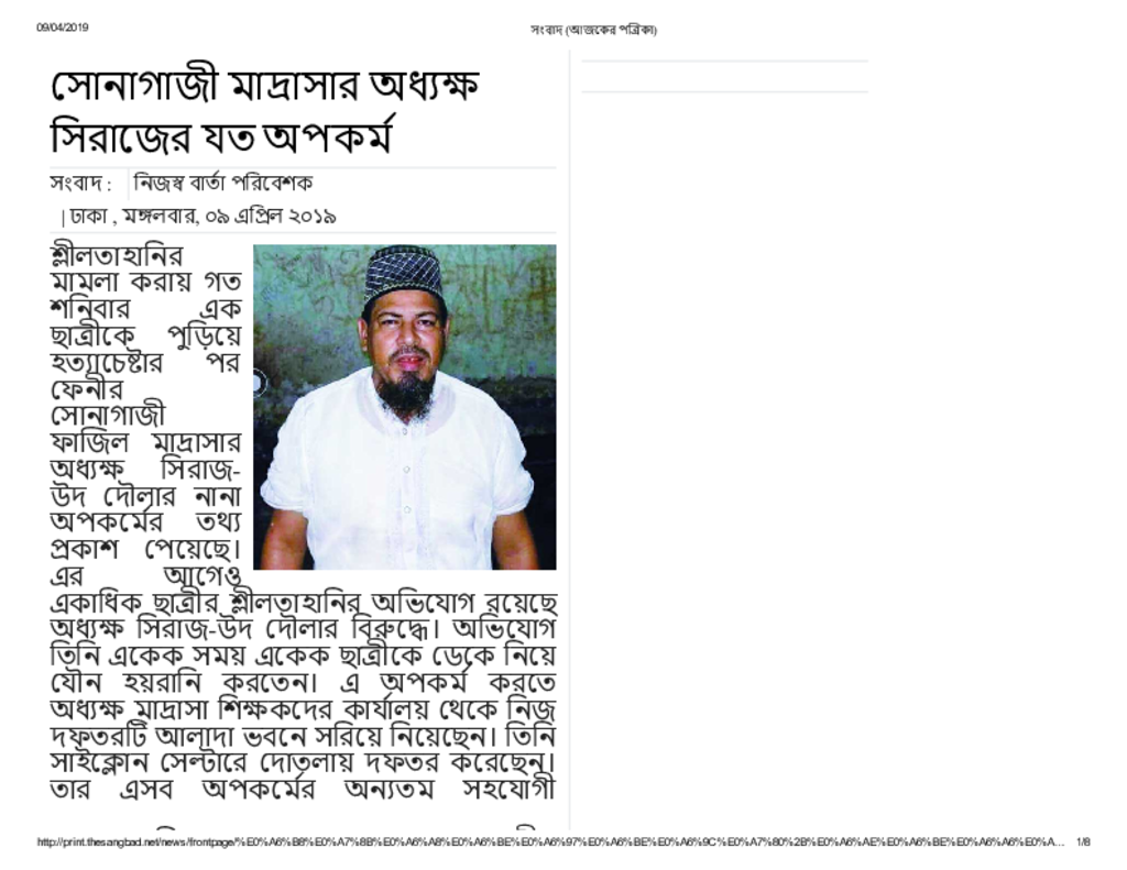 সোনাগাজী মাদ্রাসার অধ্যক্ষ সিরাজের যত অপকর্ম Published on Newspaper দৈনিক সংবাদ Category Madrasah Education Download