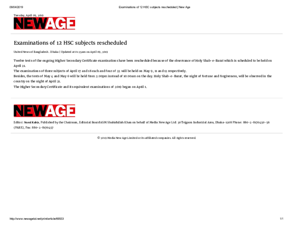 Examinations of 12 HSC subjects rescheduled _ New Age
