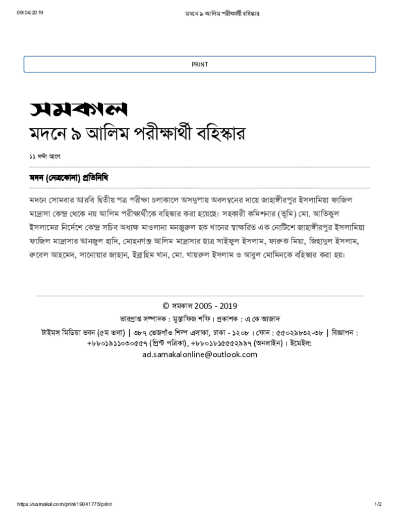 মদনে ৯ আলিম পরীক্ষার্থী বহিস্কার Published on Newspaper দৈনিক সমকাল Category Public Examination Public Examination HSC Download