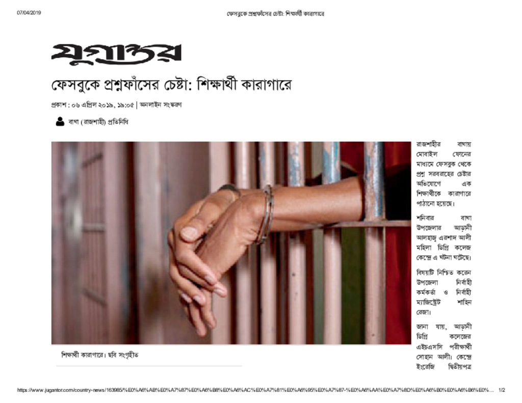 ফেসবুকে প্রশ্নফাঁসের চেষ্টা_ শিক্ষার্থী কারাগারে Published on Newspaper দৈনিক যুগান্তর Category Public Examination Public Examination HSC Download