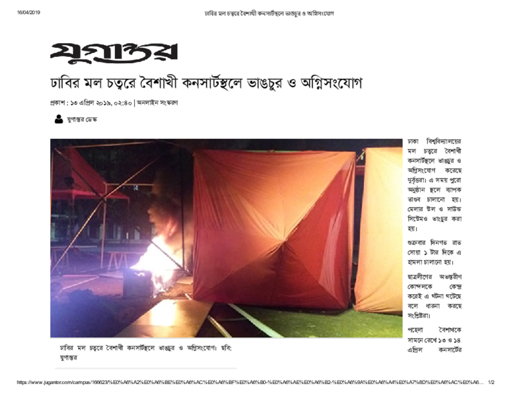 ঢাবির মল চত্বরে বৈশাখী কনসার্টস্থলে ভাঙচুর ও অগ্নিসংযোগ