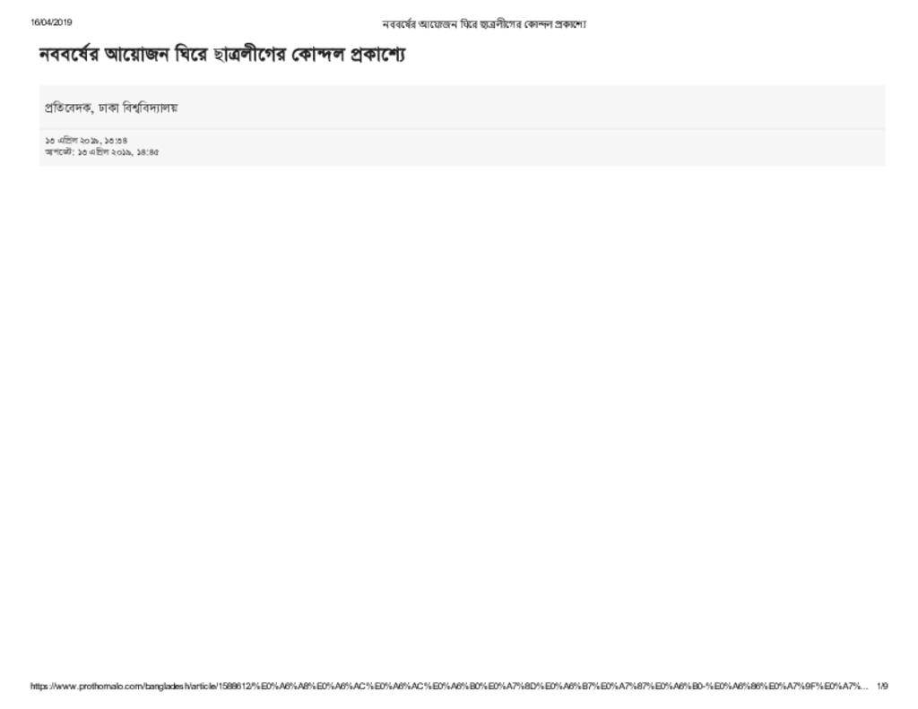 নববর্ষের আয়োজন ঘিরে ছাত্রলীগের কোন্দল প্রকাশ্যে Published on Newspaper দৈনিক প্রথম আলো Category Campus Terrorism Download