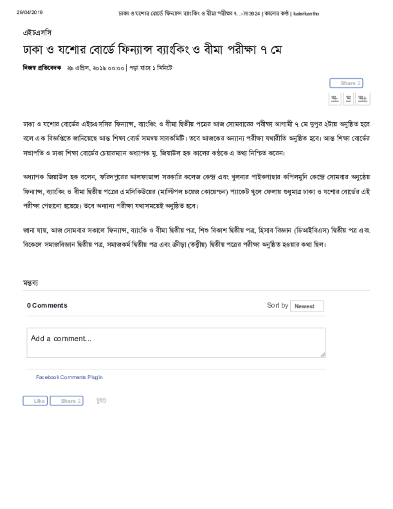ঢাকা ও যশোর বোর্ডে ফিন্যান্স ব্যাংকিং ও বীমা পরীক্ষা ৭ মে Published on Newspaper দৈনিক কালের কন্ঠ Category Public Examination Public Examination HSC Download