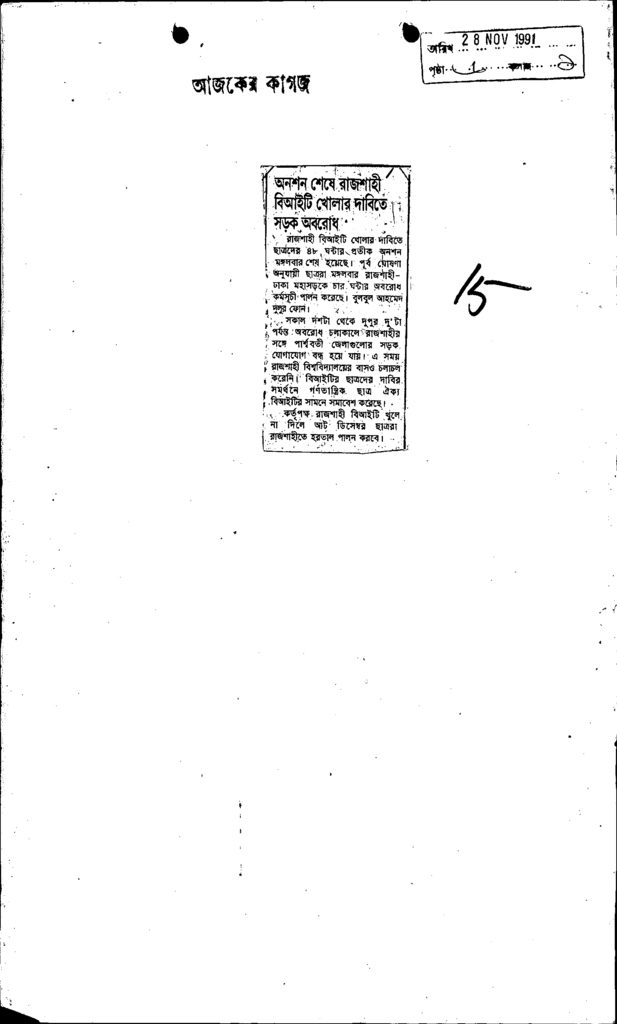 অনশন শেষে রাজশাহী বিআইটি খোলার দাবিতে সড়ক অবরোধ Published on Newspaper দৈনিক আজকের কাগজ Category Student Politics Download