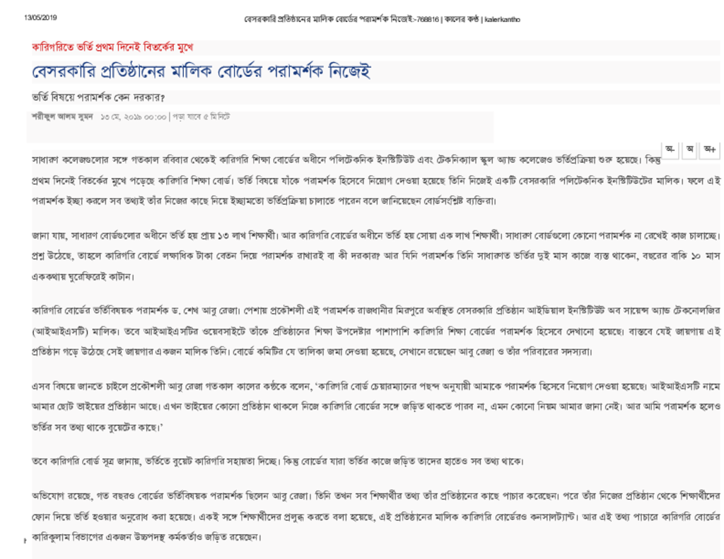 বেসরকারি প্রতিষ্ঠানের মালিক বোর্ডের পরামর্শক নিজেই_-768816 _ কালের কণ্ঠ _ kalerkantho Published on Newspaper দৈনিক কালের কন্ঠ Category Technical and Vocational Education Download