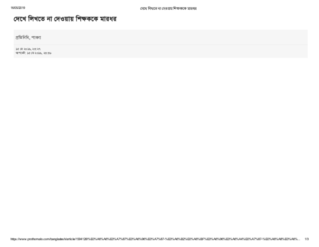 দেখে লিখতে না দেওয়ায় শিক্ষককে মারধর