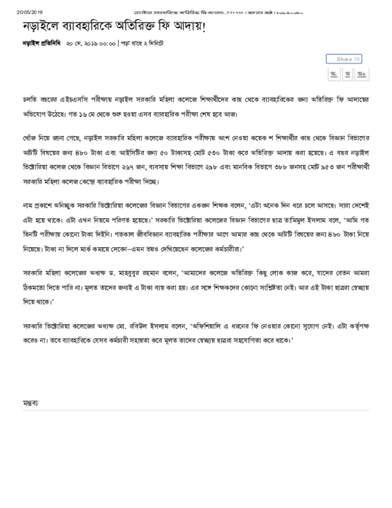 নড়াইলে ব্যাবহারিকে অতিরিক্ত ফি আদায় Published on Newspaper দৈনিক কালের কন্ঠ Category Public Examination Public Examination HSC Download