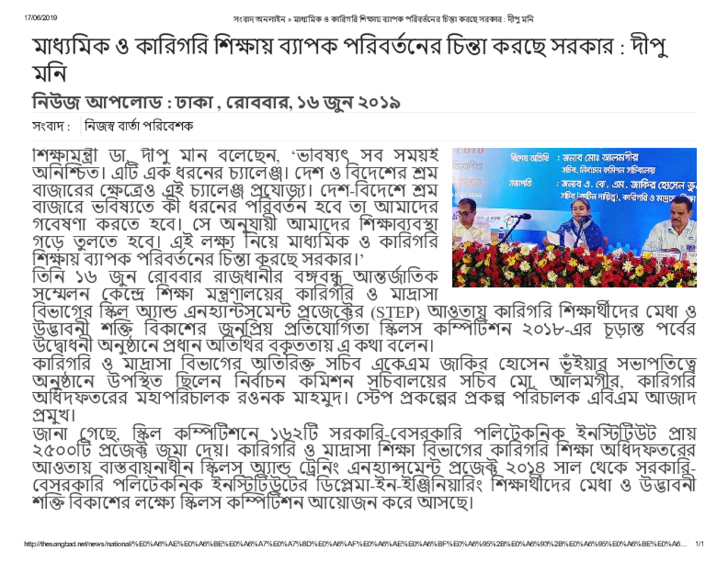 সংবাদ অনলাইন » মাধ্যমিক ও কারিগরি শিক্ষায় ব্যাপক পরিবর্তনের চিন্তা করছে সরকার _ দীপু মনি Published on Newspaper দৈনিক সংবাদ Category Technical and Vocational Education Download