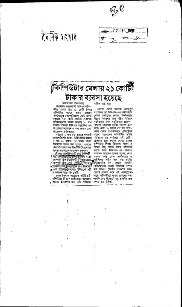 কম্পিউটার মেলায় ২১ কোটি টাকার ব্যবসা হয়েছে Published on Newspaper দৈনিক সংবাদ Category ICT Education Download
