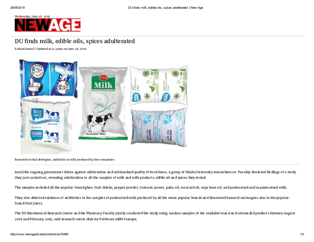 DU finds milk, edible oils, spices adulterated _ New Age Published on Newspaper New Age Category Madrasah Education Download