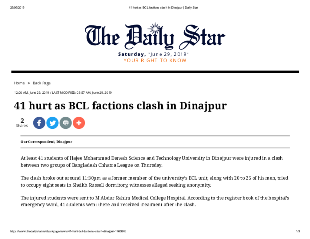 41 hurt as BCL factions clash in Dinajpur _ Daily Star Published on Newspaper The Daily Star Category Campus Terrorism Download