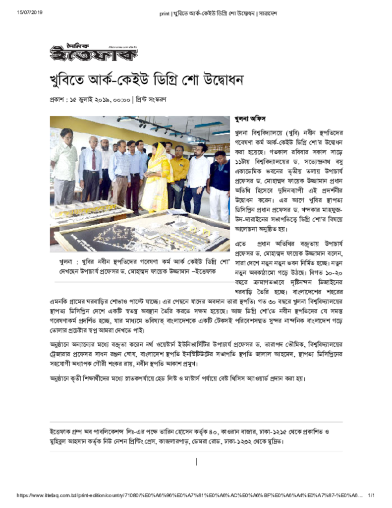print _ খুবিতে আর্ক-কেইউ ডিগ্রি শো উদ্বোধন _ সারাদেশ Published on Newspaper দৈনিক ইত্তেফাক Category Science Education Download