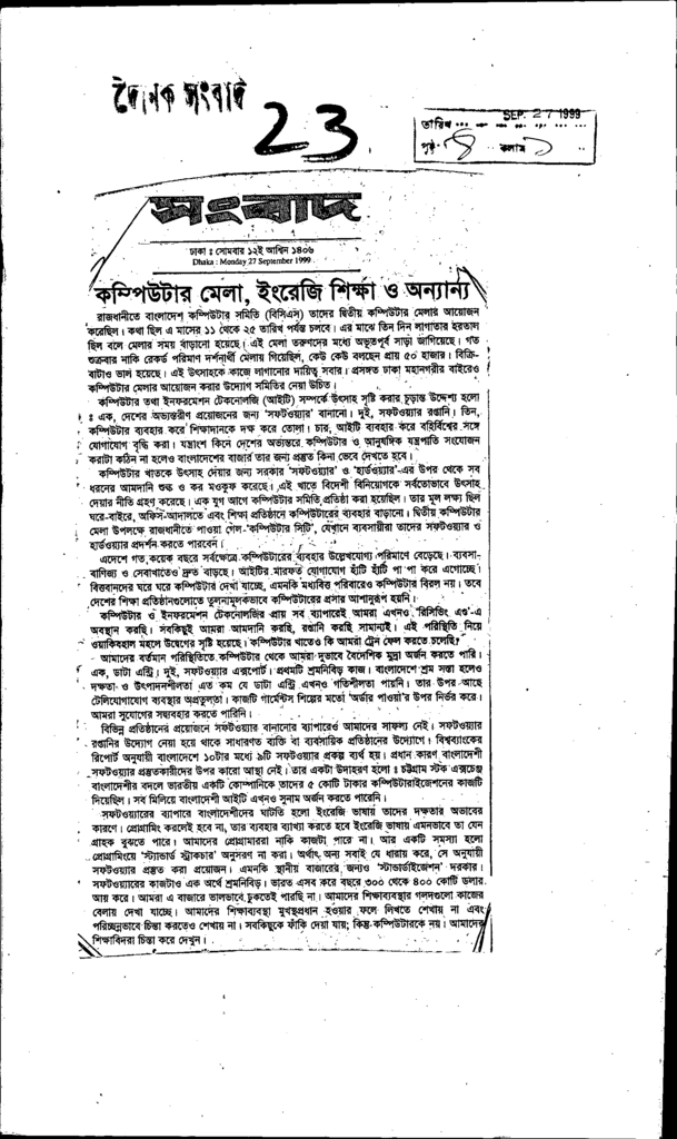 কম্পিউটার মেলা , ইংরেজি শিক্ষা ও অন্যান্য Published on Newspaper দৈনিক সংবাদ Category ICT Education Download