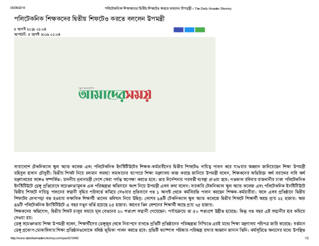 পলিটেকনিক শিক্ষকদের দ্বিতীয় শিফটেও করতে বললেন উপমন্ত্রী – The Daily Amader Shomoy Published on Newspaper দৈনিক আমাদের সময় Category Technical and Vocational Education Download