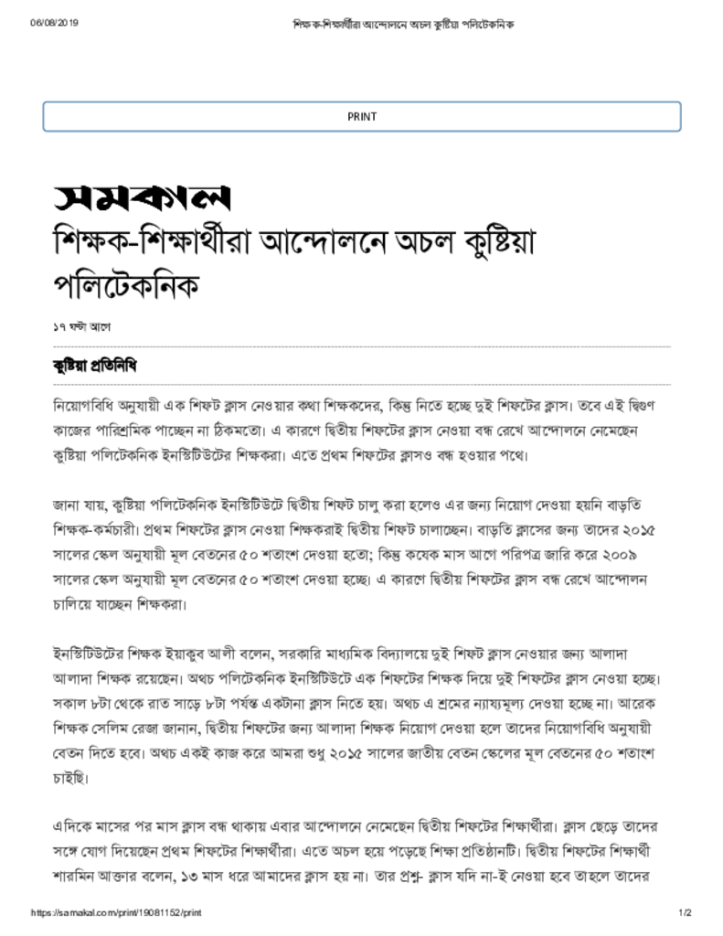 শিক্ষক-শিক্ষার্থীরা আন্দোলনে অচল কুষ্টিয়া পলিটেকনিক Published on Newspaper দৈনিক সমকাল Category Technical and Vocational Education Download