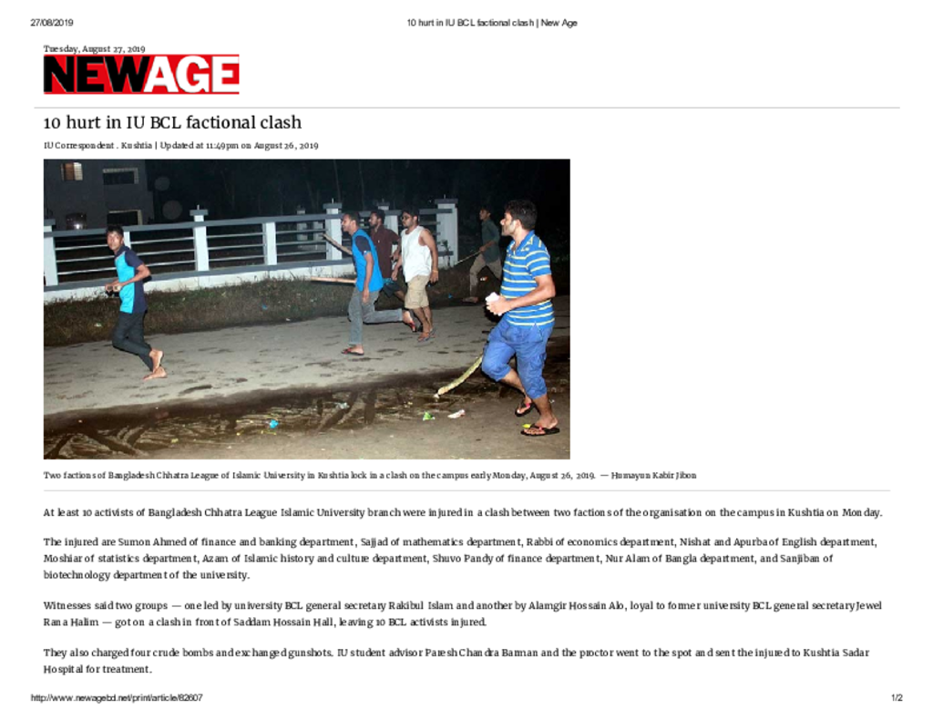 10 hurt in IU BCL factional clash _ New Age Published on Newspaper New Age Category Campus Terrorism Download