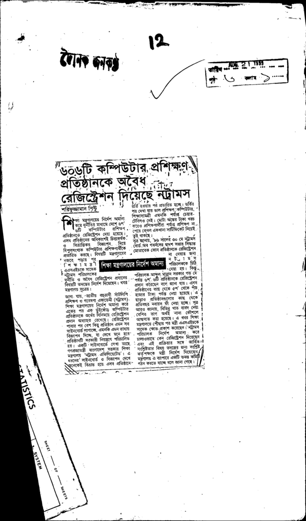 ৬০৬টি কম্পিউটার প্রশিক্ষণ প্রতিষ্ঠানকে অবৈধ রেজিস্ট্রেশন দিয়েছে নট্রামস Published on Newspaper দৈনিক জনকণ্ঠ Category ICT Education Download