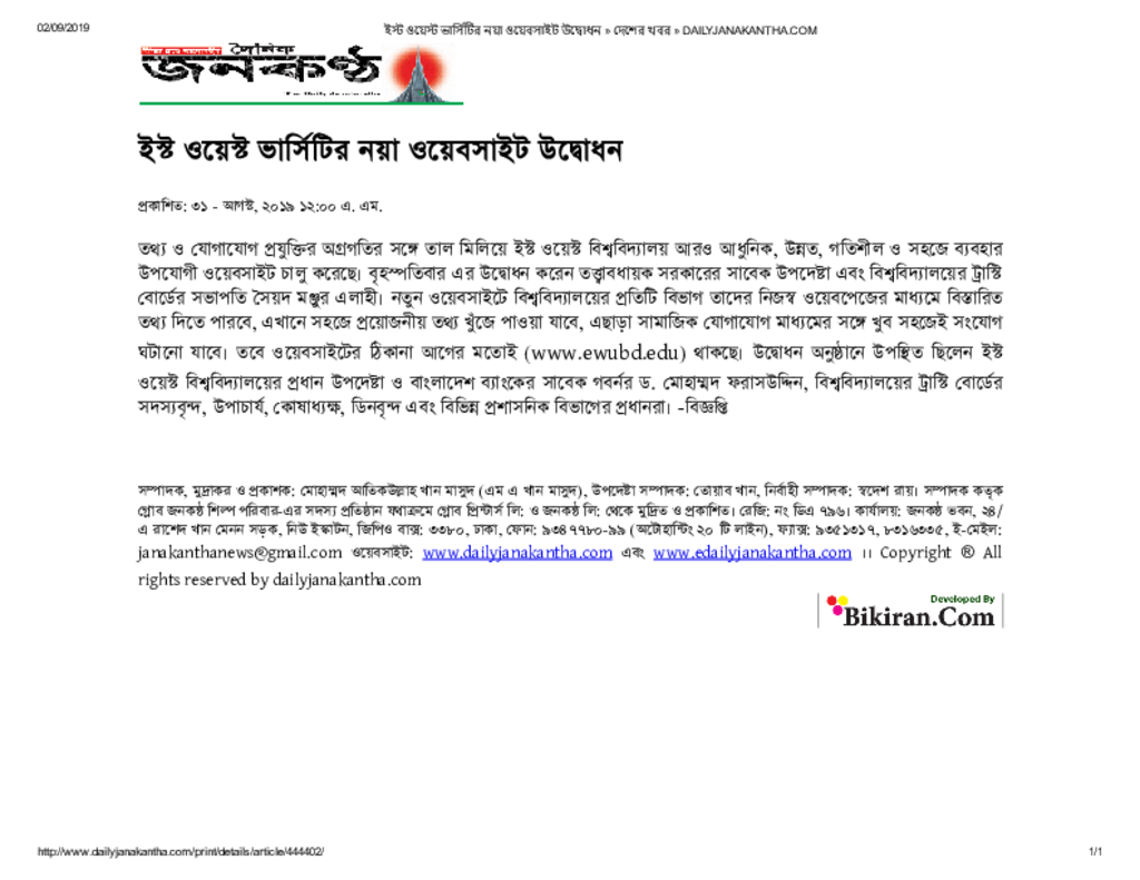 ইস্ট ওয়েস্ট ভার্সিটির নয়া ওয়েবসাইট উদ্বোধন » দেশের খবর » DAILYJANAKANTHA Published on Newspaper দৈনিক জনকণ্ঠ Category General Education General Education Higher Education Private Download