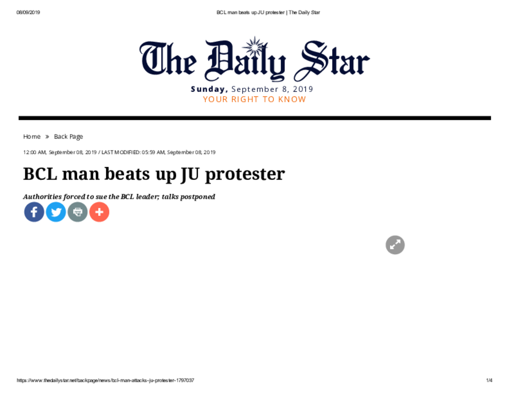 BCL man beats up JU protester _ The Daily Star Published on Newspaper The Daily Star Category Campus Terrorism Download