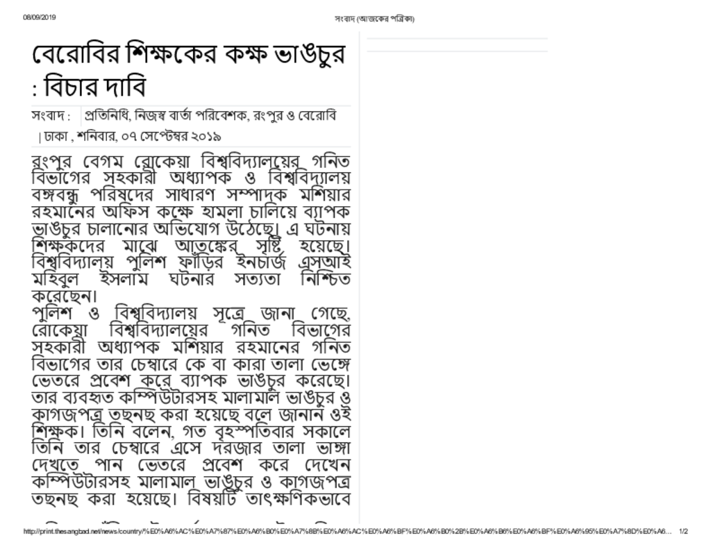 বেরোবির শিক্ষকের কক্ষ ভাঙচুর বিচার দাবি Published on Newspaper দৈনিক সংবাদ Category Campus Terrorism Download