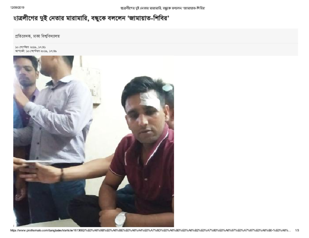 ছাত্রলীগের দুই নেতার মারামারি, বন্ধুকে বললেন ‘জামায়াত-শিবির’ Published on Newspaper দৈনিক প্রথম আলো Category Campus Terrorism Download