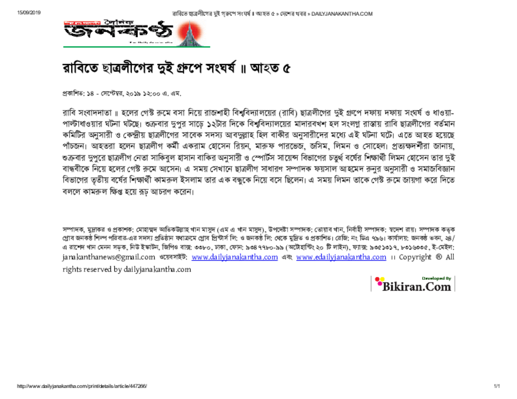 রাবিতে ছাত্রলীগের দুই গ্রুপে সংঘর্ষ ॥ আহত ৫ » দেশের খবর » DAILYJANAKANTHA
