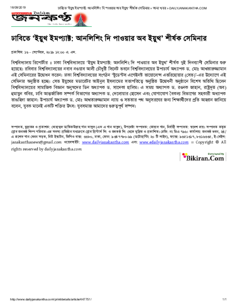 ঢাবিতে ‘ইয়ুথ ইমপ্যাক্ট_ আনলিশিং দি পাওয়ার অব ইয়ুথ’ শীর্ষক সেমিনার » অন্য খবর » DAILYJANAKANTHA.COM
