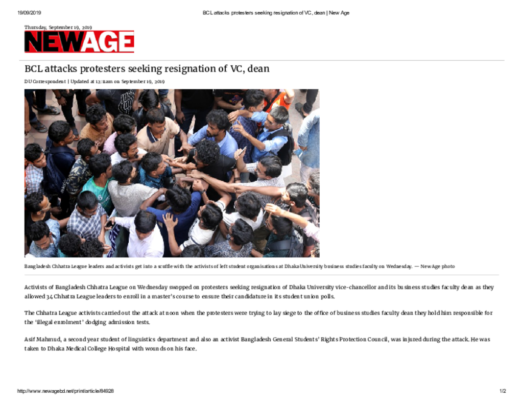 BCL attacks protesters seeking resignation of VC, dean _ New Age Published on Newspaper New Age Category Campus Terrorism Download