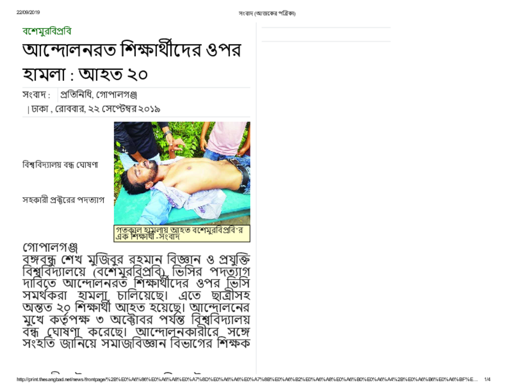 আন্দোলনরত শিক্ষার্থীদের ওপর হামলা Published on Newspaper দৈনিক সংবাদ Category Campus Terrorism Download