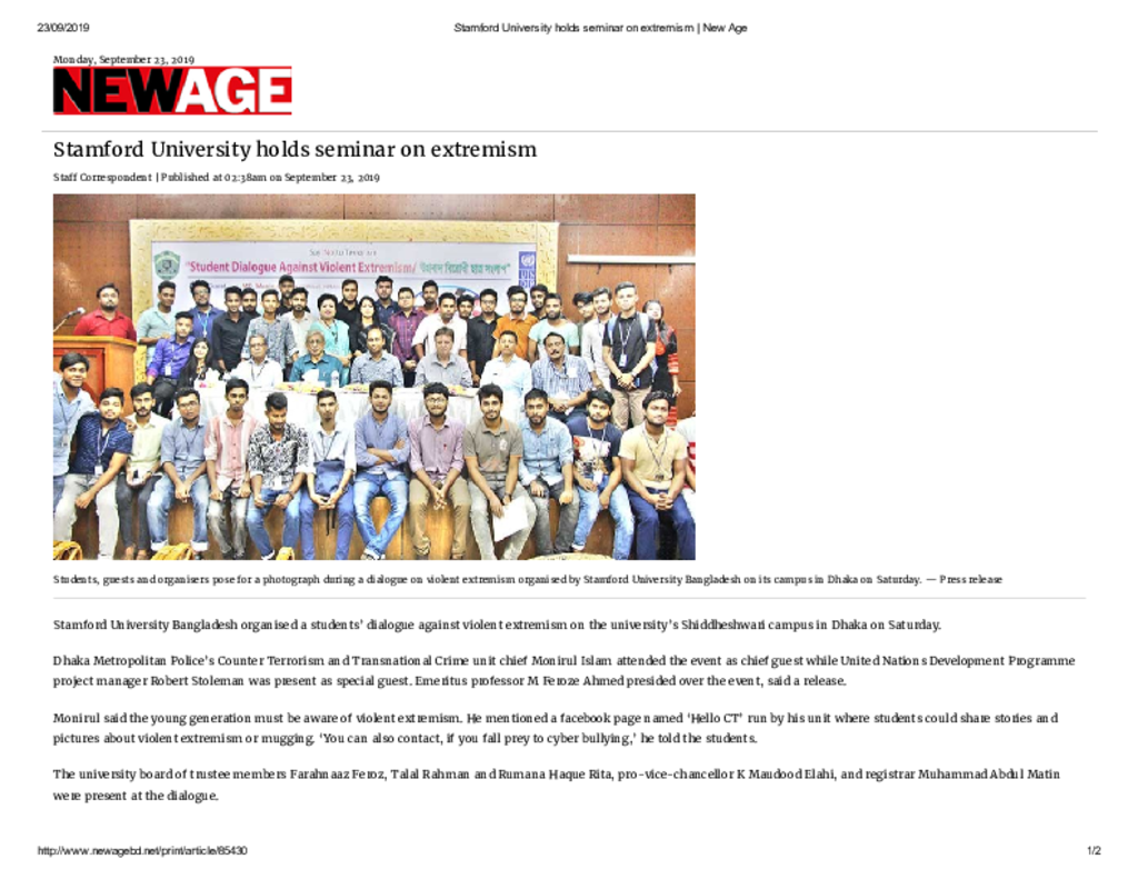 Stamford University holds seminar on extremism _ New Age Published on Newspaper New Age Category General Education General Education Higher Education Private Download