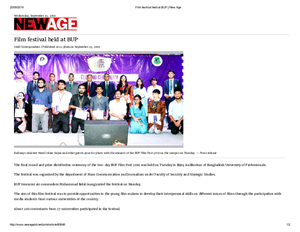 Film festival held at BUP _ New Age