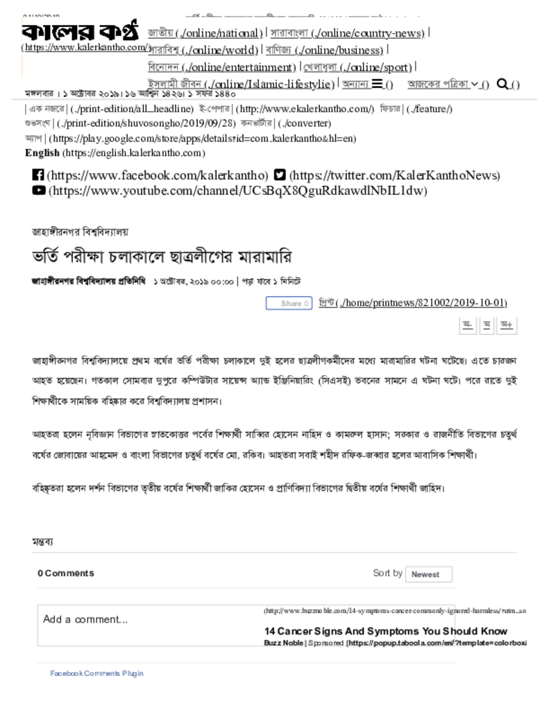 ভর্তি পরীক্ষা চলাকালে ছাত্রলীগের মারামারি Published on Newspaper দৈনিক কালের কন্ঠ Category Campus Terrorism Download