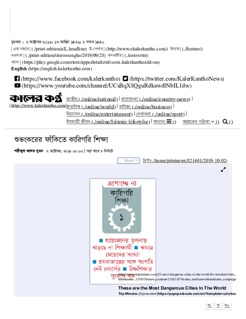 শুভংকরের ফাঁকিতে কারিগরি শিক্ষা Published on Newspaper দৈনিক কালের কন্ঠ Category Technical and Vocational Education Download
