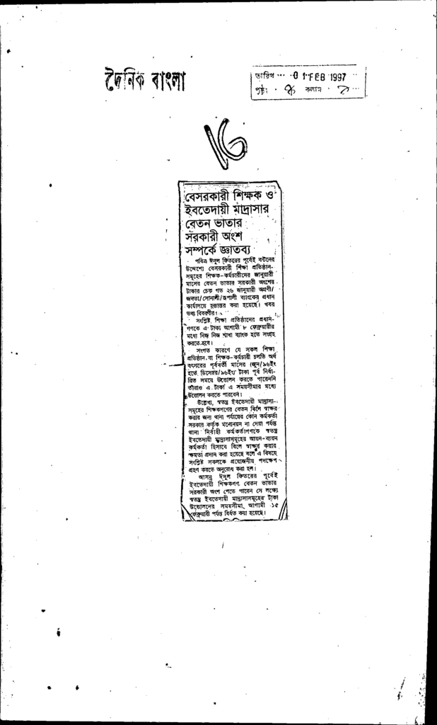 বেসরকারী শিক্ষক ও ইবতেদায়ী মাদ্রাসার বেতন ভাতার সরকারী অংশ সম্পর্কে Published on Newspaper দৈনিক বাংলা Category Education Policy / Education Commission Download