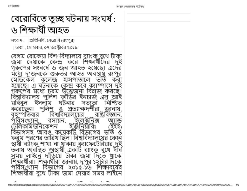বেরোবিতে তুচ্ছ ঘটনায় সংঘর্ষ , ৬ শিক্ষার্থী আহত