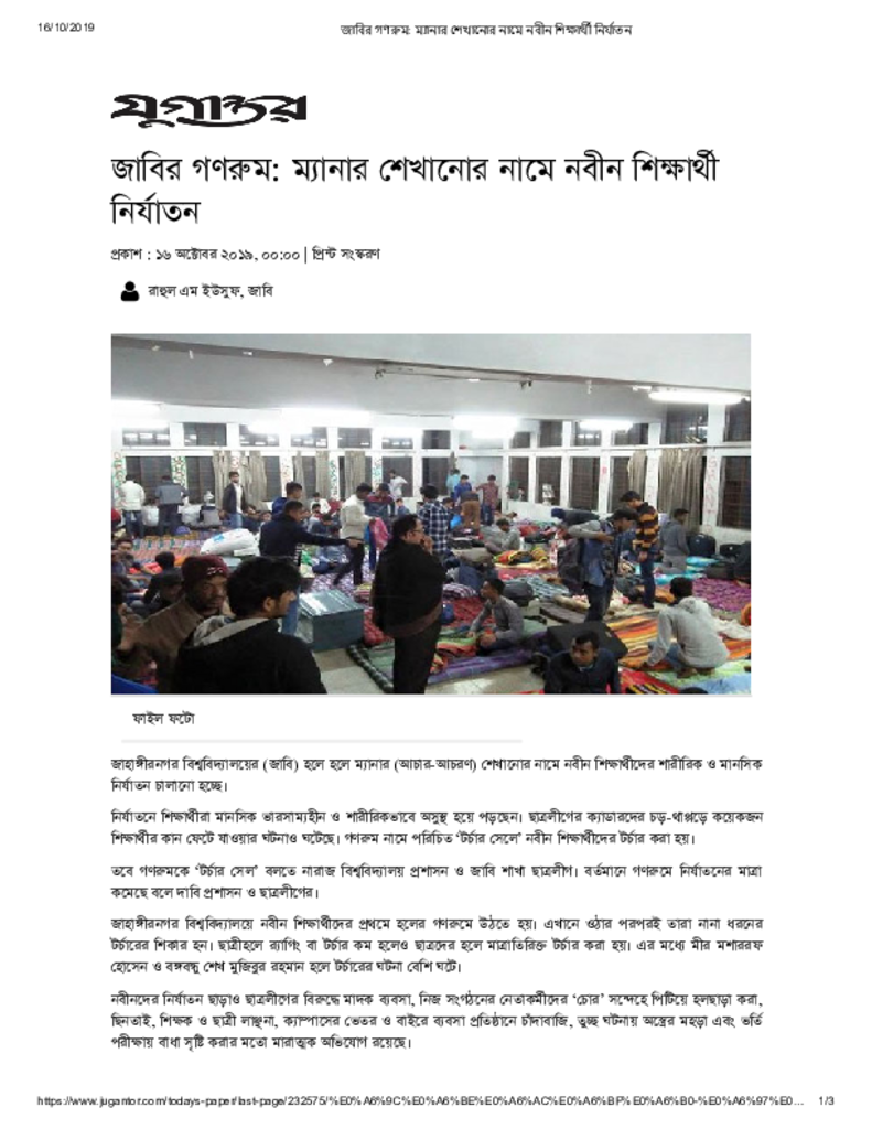 জাবির গণরুম_ ম্যানার শেখানোর নামে নবীন শিক্ষার্থী নির্যাতন