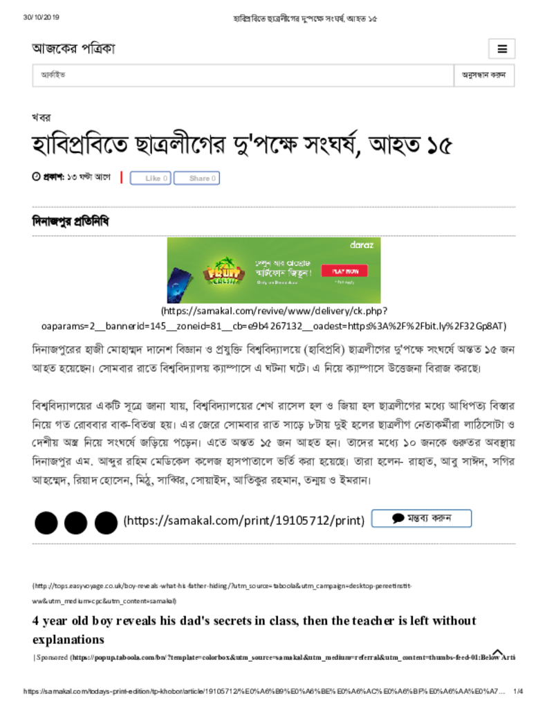 হাবিপ্রবিতে ছাত্রলীগের দু'পক্ষে সংঘর্ষ, আহত ১৫ Published on Newspaper দৈনিক সমকাল Category Campus Terrorism Download