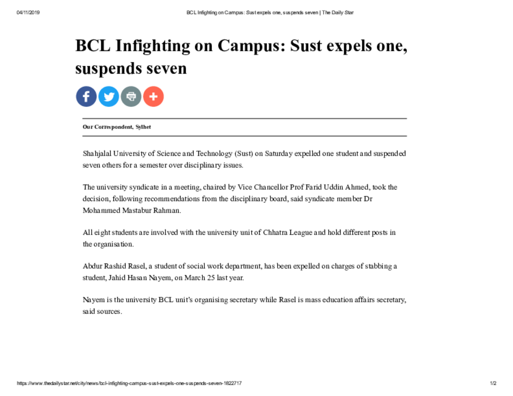 BCL Infighting on Campus_ Sust expels one, suspends seven _ The Daily Star Published on Newspaper The Daily Star Category Campus Terrorism Download