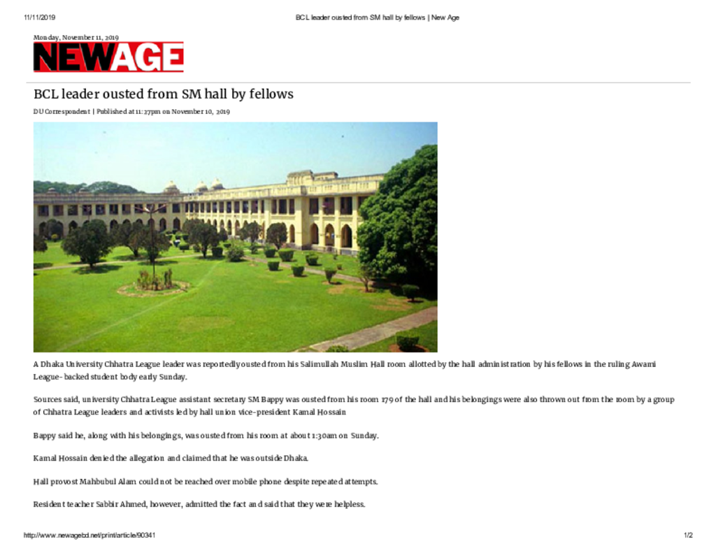 BCL leader ousted from SM hall by fellows _ New Age Published on Newspaper New Age Category Campus Terrorism Download